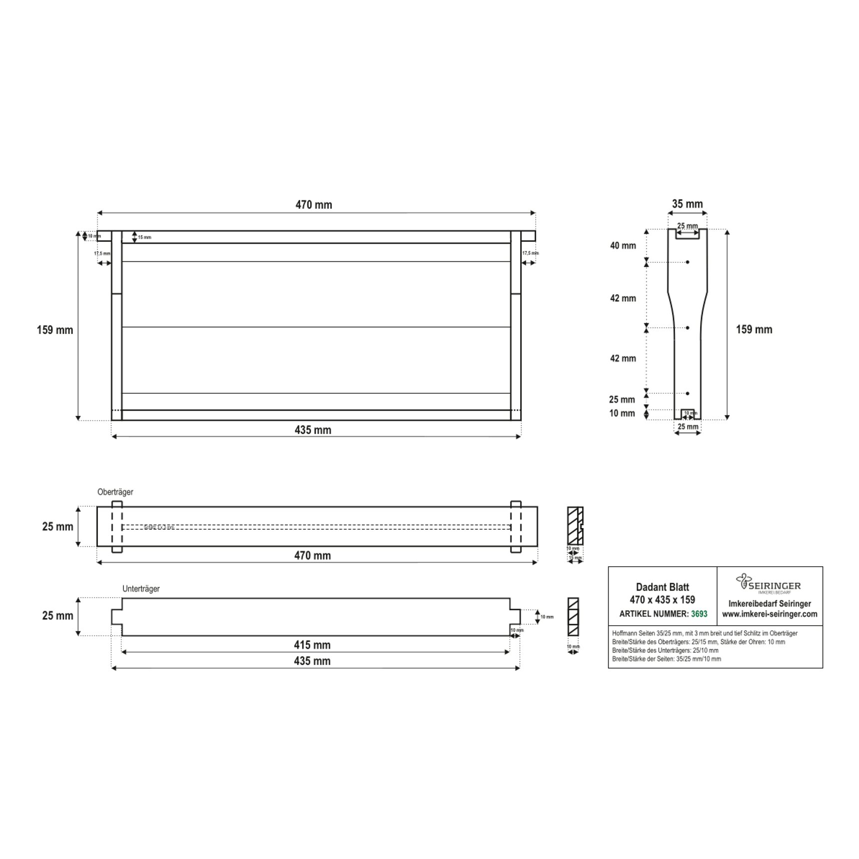 Kategorien: Rähmchen & Zubehör, Dadant Blatt
